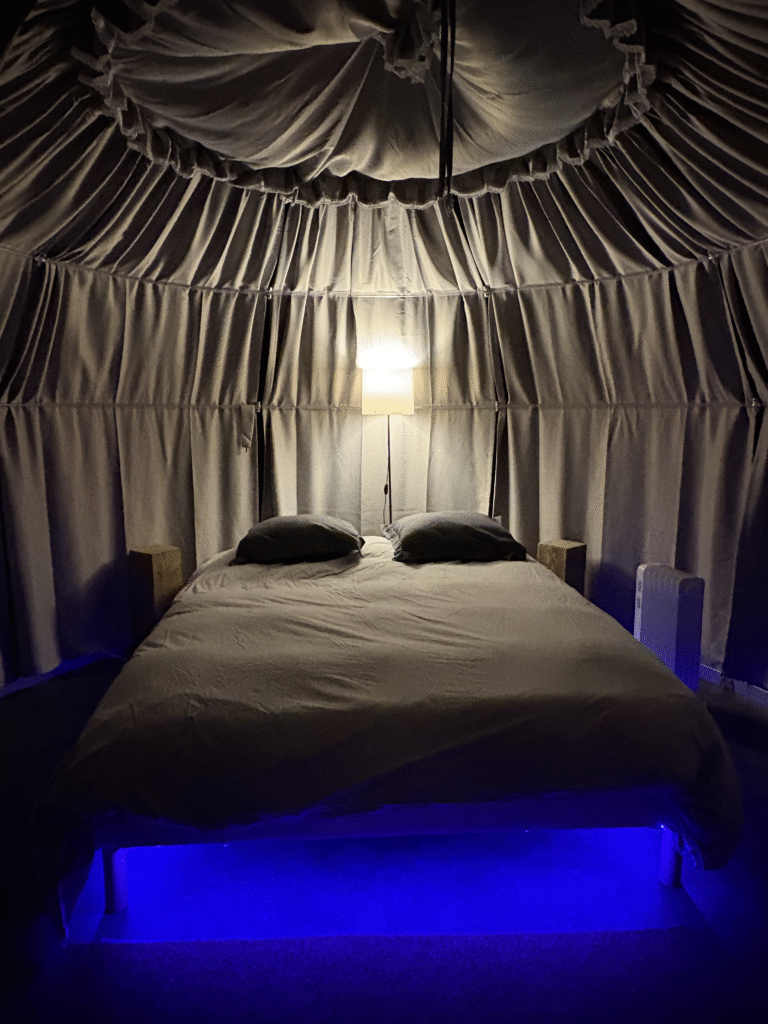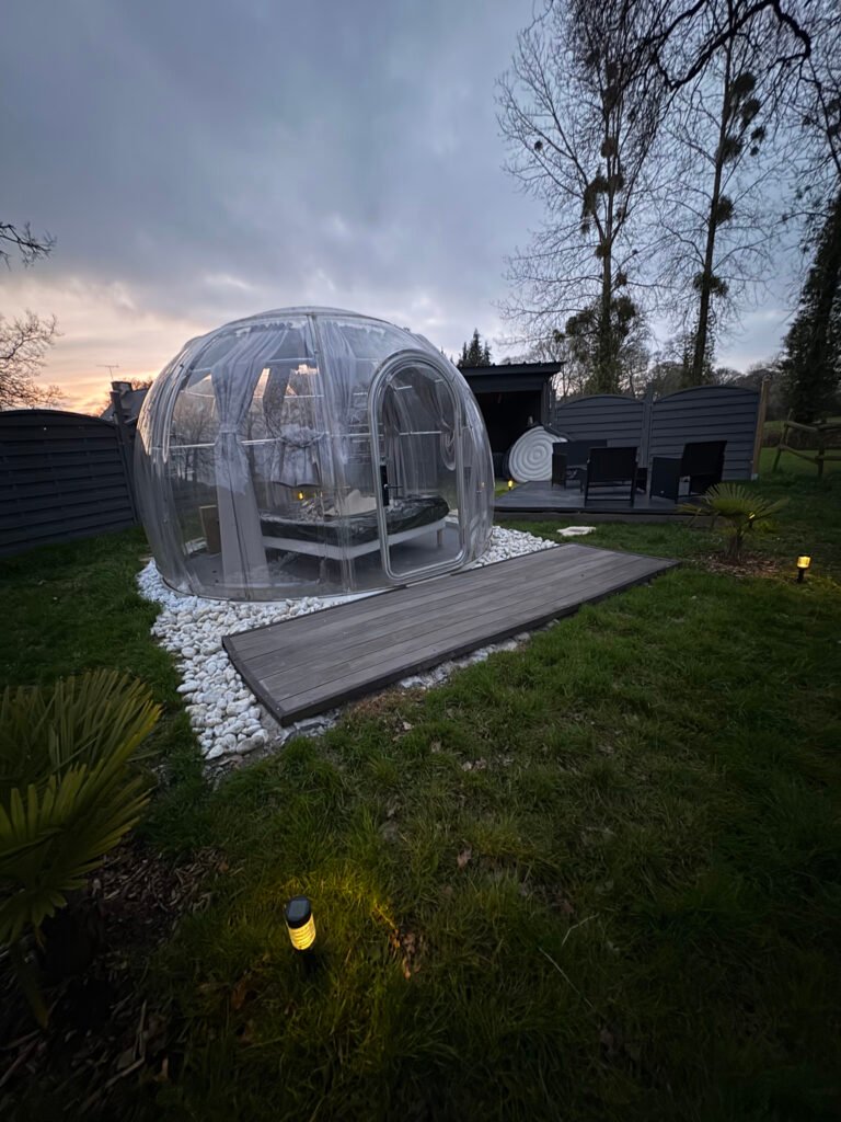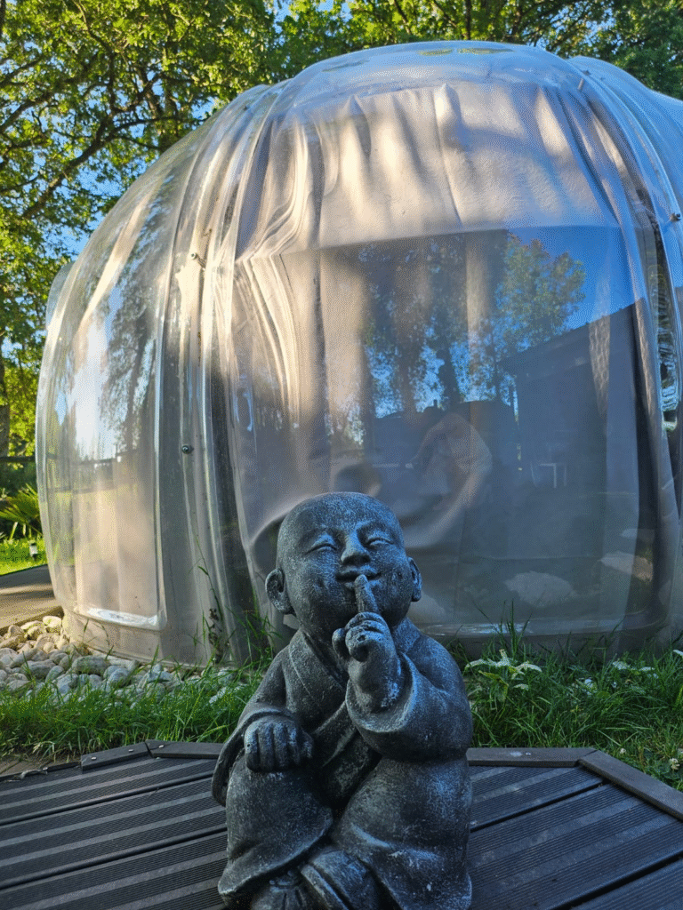 Lorsque vous réservez une nuit dans le Dôme des Saudrais, vous avez directement accès au spa privatif. Celui-ci se trouve juste à côté du Dôme et offre une vue sur la nature.
